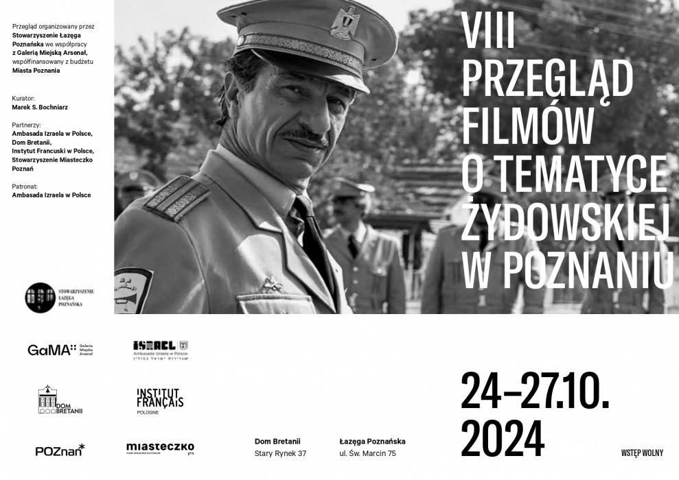 VIII Przegląd Filmów o Tematyce Żydowskiej w Poznaniu odbędzie się w dniach 24-27 października. Miejsca pokazów to Dom Bretanii i Atelier Wimar Stowarzyszenia Łazęga Poznańska. Wstęp na wszystkie wydarzenia jest bezpłatny.