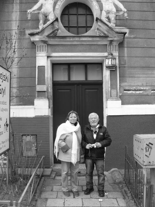 Elżbieta, córka Anny z mężem przed kamienicą przy ulicy Mickiewicza w Poznaniu. Fot. Zbigniew Pakuła