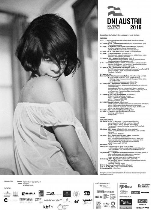 Już po raz drugi Konsulat Generalny Austrii w Krakowie zaprasza na przełomie października i listopada na Dni Austrii. Projekt obejmuje wydarzenia z dziedziny kultury i sztuki oraz edukacji historycznej; to spotkanie z austriacką literaturą, muzyką, sztuką, fotografią i filmem.