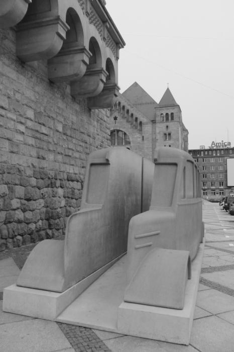 Pomnik szarych autobusów przed CK Zamek w Poznaniu. Fot. M.Smolińska