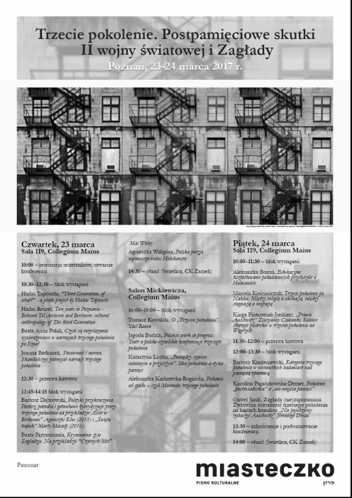 Serdecznie zapraszamy do udziału w konferencji naukowej "Trzecie pokolenie. Postpamięciowe skutki II wojny światowej i Zagłady" organizowanej w Instytucie Filologii Polskiej na Wydziale Filologii Polskiej UAM.